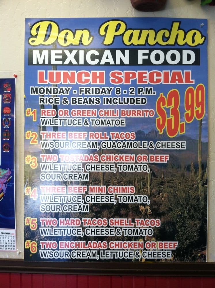 Welcome to Don Pancho Mexican Food, a charming gem located in Avondale, Arizona, where delicious traditional flavors take center stage. This casual eatery specializes in authentic Mexican cuisine that delights both locals and visitors alike.